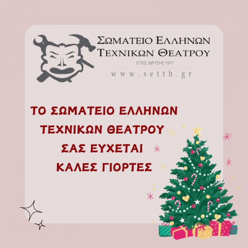 Το Σωματείο Ελλήνων Τεχνικών Θεάτρου και το Ταμείο Αρωγής Σωματείου Ελλήνων Τεχνικών Θεάτρου σας εύχονται καλά Χριστούγεννα και ευτυχισμένο το νέο έτος, με υγεία και χαρά!