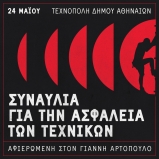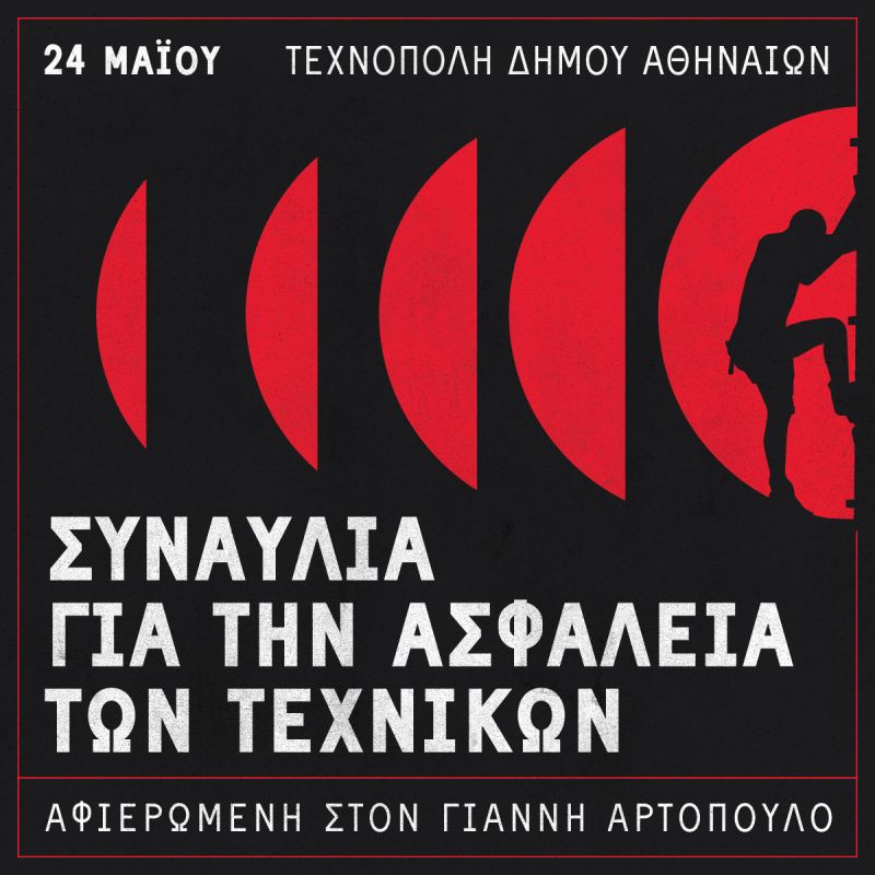 Με αφορμή την Παγκόσμια Ημέρα για την Υγεία και Ασφάλεια στην Εργασία, ημέρα αφιερωμένη στην εξάλειψη των εργατικών ατυχημάτων και των επαγγελματικών ασθενειών, σας καλούμε στην συναυλία που διοργανώνεται στις 24 Μαΐου στην Τεχνόπολη του Δήμου Αθηναίων. Με αφορμή την ημέρα αυτή τα Σωματεία και οι Ομοσπονδίες που εκδίδουμε αυτή την ανακοίνωση στηρίζουμε την συναυλία αφιερωμένη στον Γιάννη Αρτόπουλο.